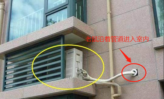 ②排风口、空调管孔、水暖气管孔洞等与外界相通的洞口都可能成为老鼠侵入室内的途径,如果直径大于0.6cm,可以采用钢丝球加上发泡剂等老鼠不易咬坏的材料直接进行封堵。